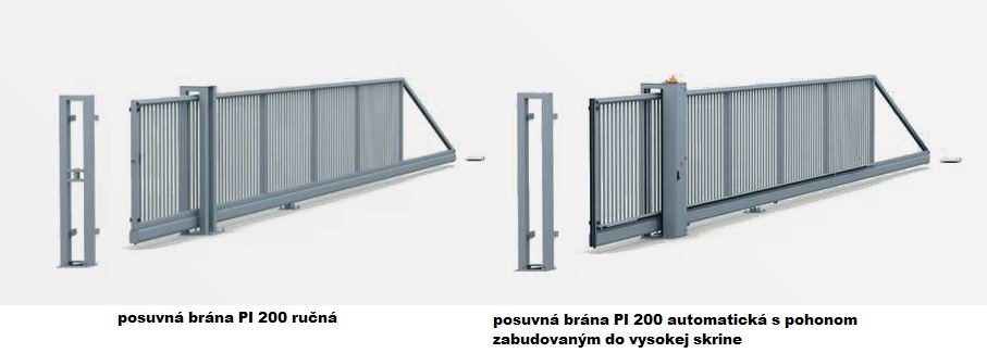 Samonosná posuvná brána PI 200 je určená k uzatváraniu vjazdov so šírkou prejazdu do 16metrov, v prípade spojenia dvoch protiľahlých brán (2x12m) prejazdu do 24 metrov.