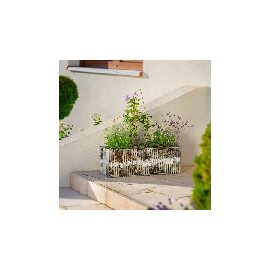 Tento charakteristický gabionový kvetináč púta pozornosť svojim mimoriadnym dizajnom.