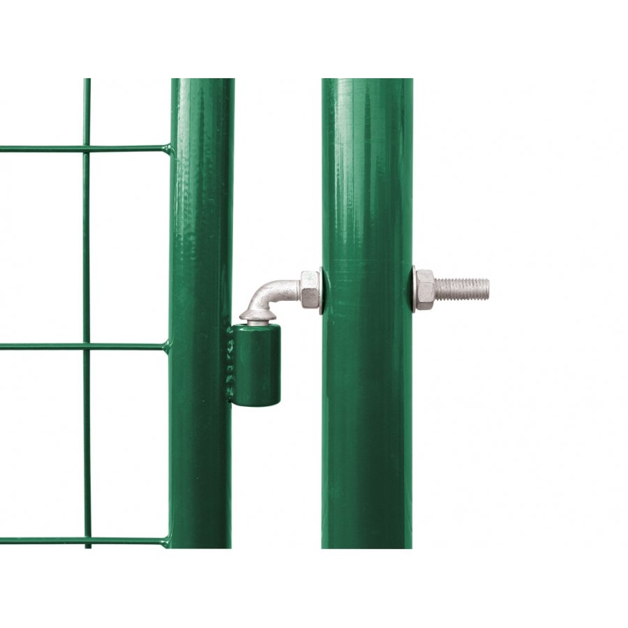 Záhradná jednokrídlová bránka PROMOTION s výplňou zváraného pletiva s okami 50x100mm a priemerom drôtu 3,5mm. Úprava je zinok + pvc vo farbe RAL6005 zelená. Bránka je výšky 145cm a šírky 107,3cm (stred a stred stĺpika). Bránka má rám z guľatých profilov (uzatvorený). Balenie obsahuje: 2x stĺpik Ø48mm 200cm, pánty, dózický zámok (jednoduchá zámena za FAB), kovový doraz a plastovú kľučku. Bránku je možné použiť ako ľavé alebo pravé uzatváranie (otváranie dnu i von).