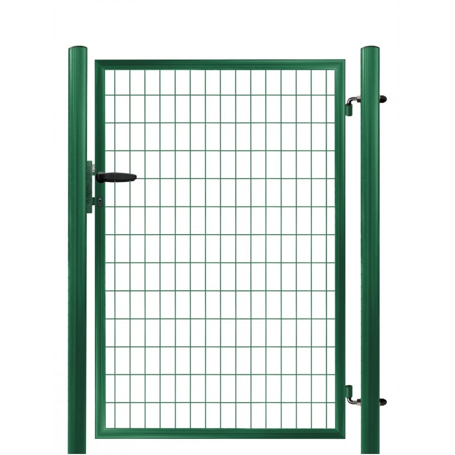 Záhradná jednokrídlová bránka PROMOTION s výplňou zváraného pletiva s okami 50x100mm a priemerom drôtu 3,5mm. Úprava je zinok + pvc vo farbe RAL6005 zelená. Bránka je výšky 95cm a šírky 107,3cm (stred a stred stĺpika). Bránka má rám z guľatých profilov (uzatvorený). Balenie obsahuje: 2x stĺpik Ø48mm 150cm, pánty, dózický zámok (jednoduchá zámena za FAB), kovový doraz a plastovú kľučku. Bránku je možné použiť ako ľavé alebo pravé uzatváranie (otváranie dnu i von).