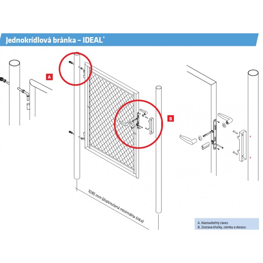 Záhradná 145cm jednokrídlová Bránka YDEAL je vhodná k pletenému pletivu výšky 150cm. Ako oporu k bránkovým stĺpikom odporúčame 200cm podpery NEX/38mm.