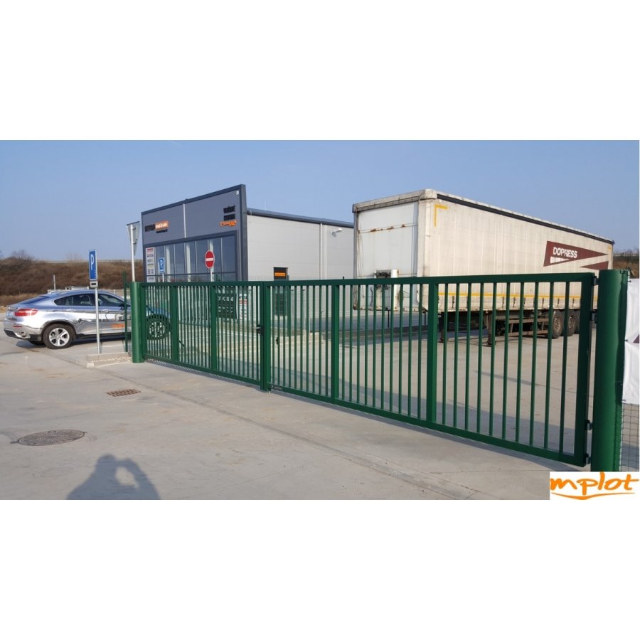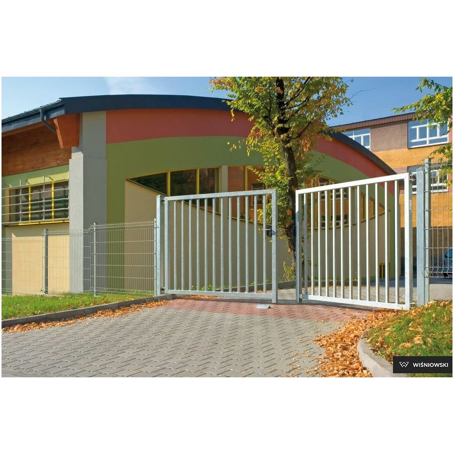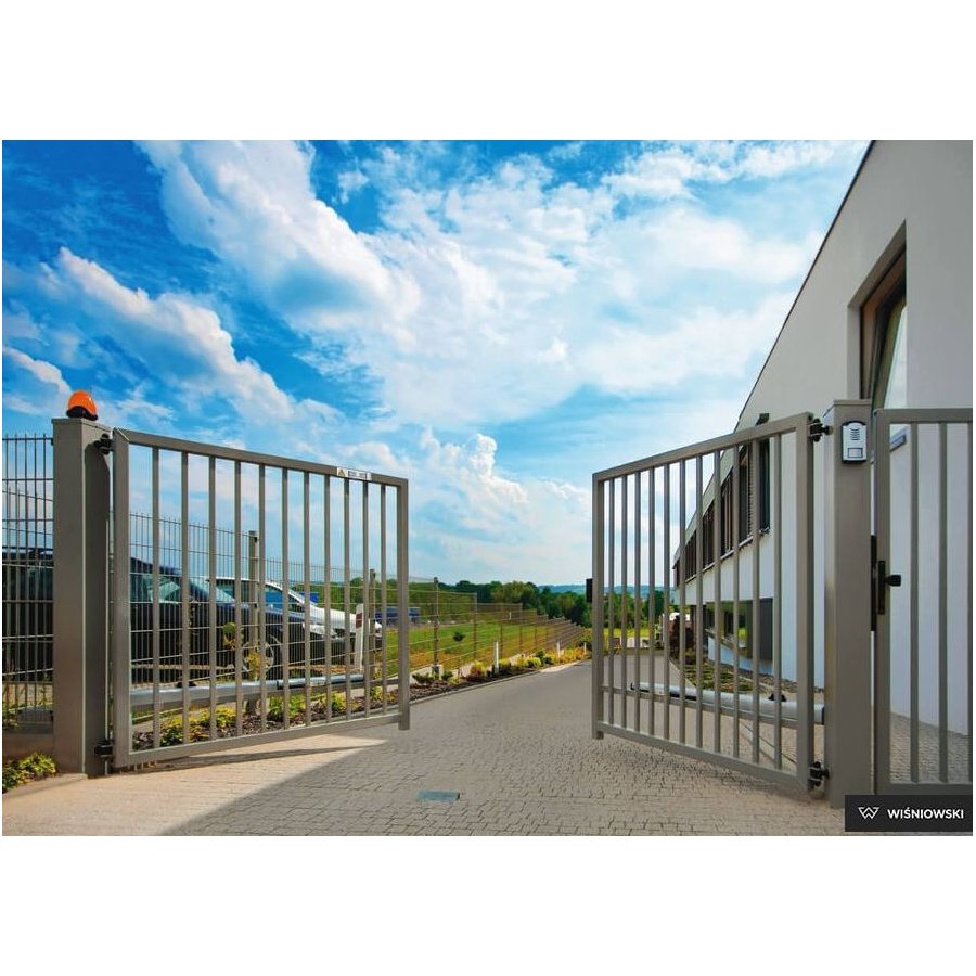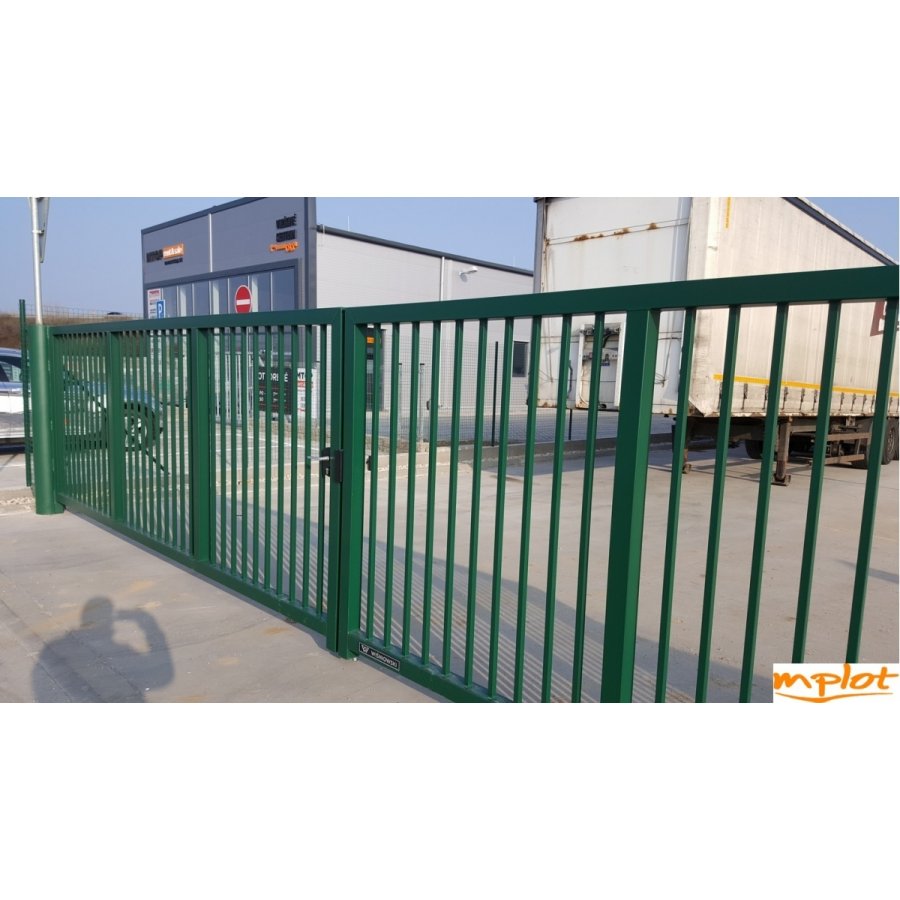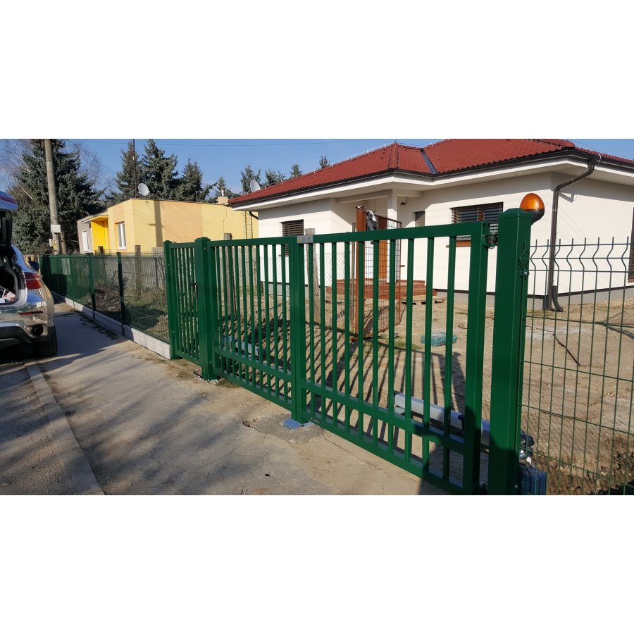 Brána s pohonom nemá zámok ani západku, pohon je montovaný do krídel a stĺpikov.