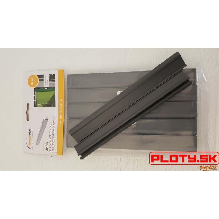 Ukončovací klips ku krycej páske perform na plotové panely vo farbe antracit RAL7016. Šírka klipsu je 19cm. Balenie obsahuje 1 ks.