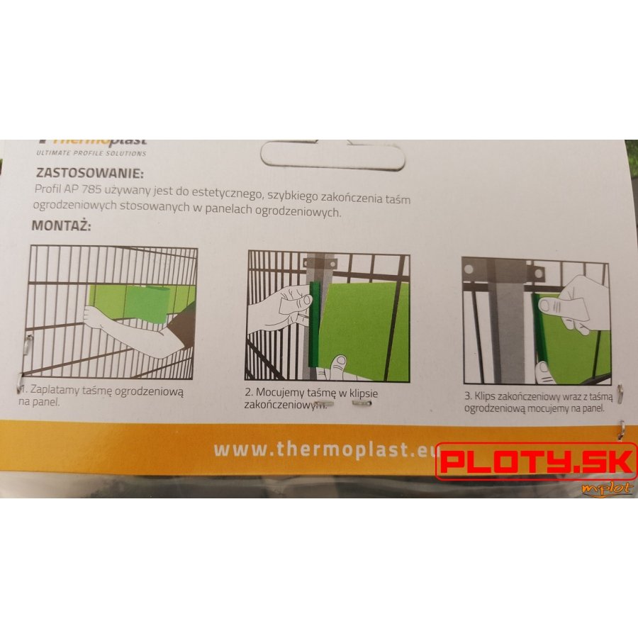 Ukončovací klips ku krycej páske perform na plotové panely v zelenej farbe RAL6005. Šírka klipsu je 19cm. Balenie obsahuje 1 ks.