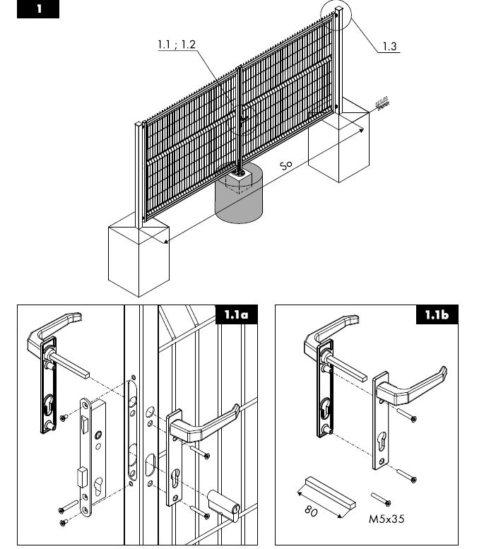 Dvojkrídlová brána výšky 173cm je vhodná k plotovým panelom APOLLO a CLASSIC 3D rovnakej výšky.