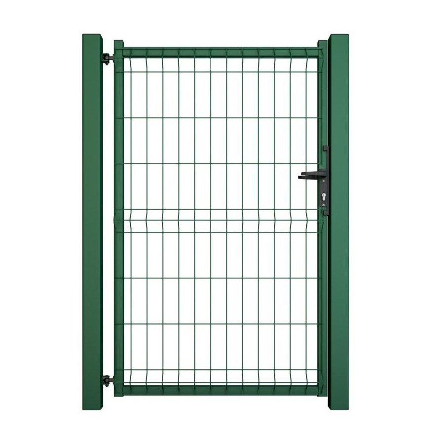 Jednokrídlová žiarovo pozinkovaná+PVC RAL6005 zelená bránka MODEST s pevnou konštrukciou, vhodná k plotovým panelom. Výška bránky 123cm a šírka 108cm (stred a stred stĺpika). Rám je s joklových profilov 40x40 (uzavretý). Výplň bránky je panel CLASSIC 3D s hrúbkou drôtu 5mm. Súčasťou je: 2x stĺpik 80x80 výšky 180cm, kľučka, FAB vložka + 3x kľúč, zámok, nastavovacie pánty, doraz a štítky. Na výber je ľavé alebo pravé prevedenie bránky.(podľa obrázku) Bránka sa vyznačuje vysokou kvalitou.