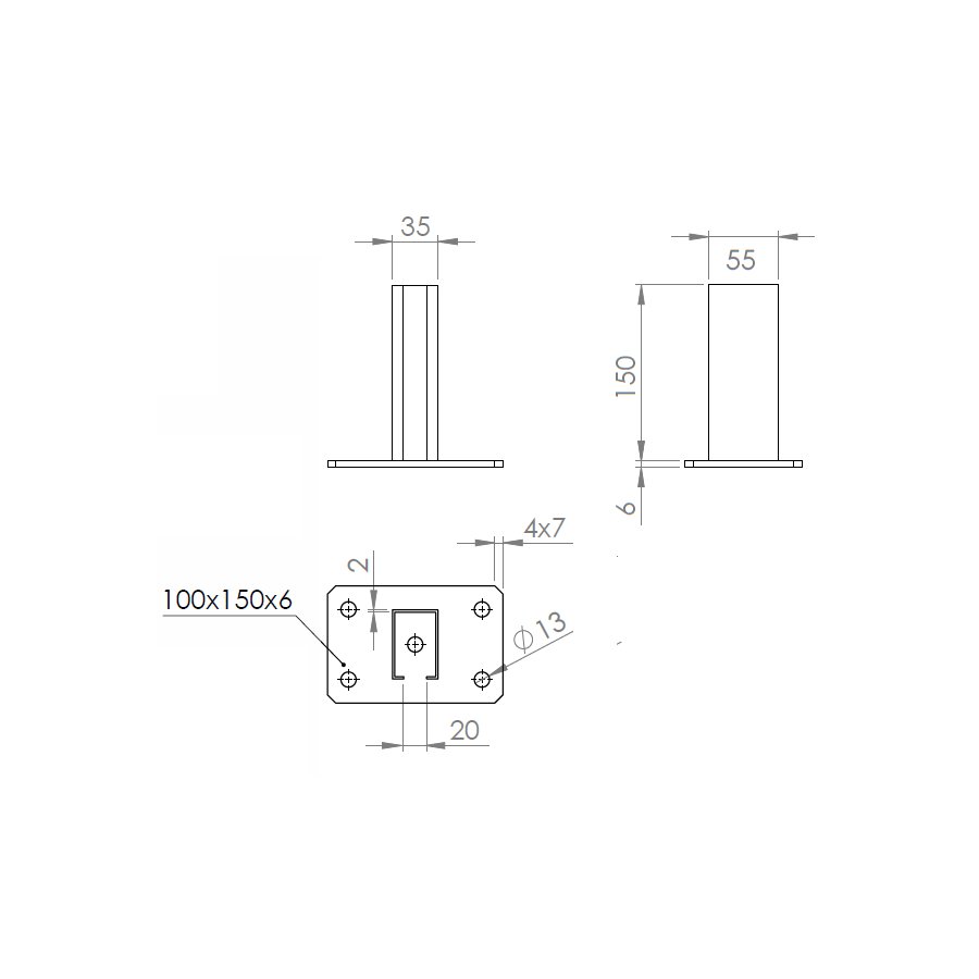 Pätka slúži na ukotvenie stĺpika k betónovej podlahe. Pozinkovaná pätka má platňu 10x15cm a je určená k stĺpikom TANGEL a PREMIUM joklového profilu 60x40.