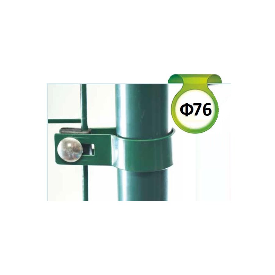 Koncová príchytka METAL je určená na okrúhly stĺpik priemeru 76mm. Je pozinkovaná a poplastová vo farbe RAL6005 zelená. Súčasťou balenia je skrutka, matica, podložka a pvc prvok.