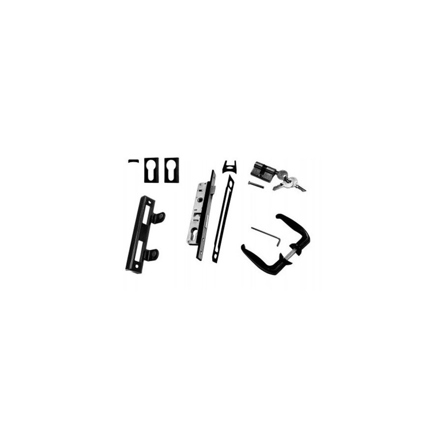 FAB set k dvojkrídlovým bránam YDEAL a PROMOTION obsahuje kľučku, FAB vložku +2x kľúč, zámok a štítky.