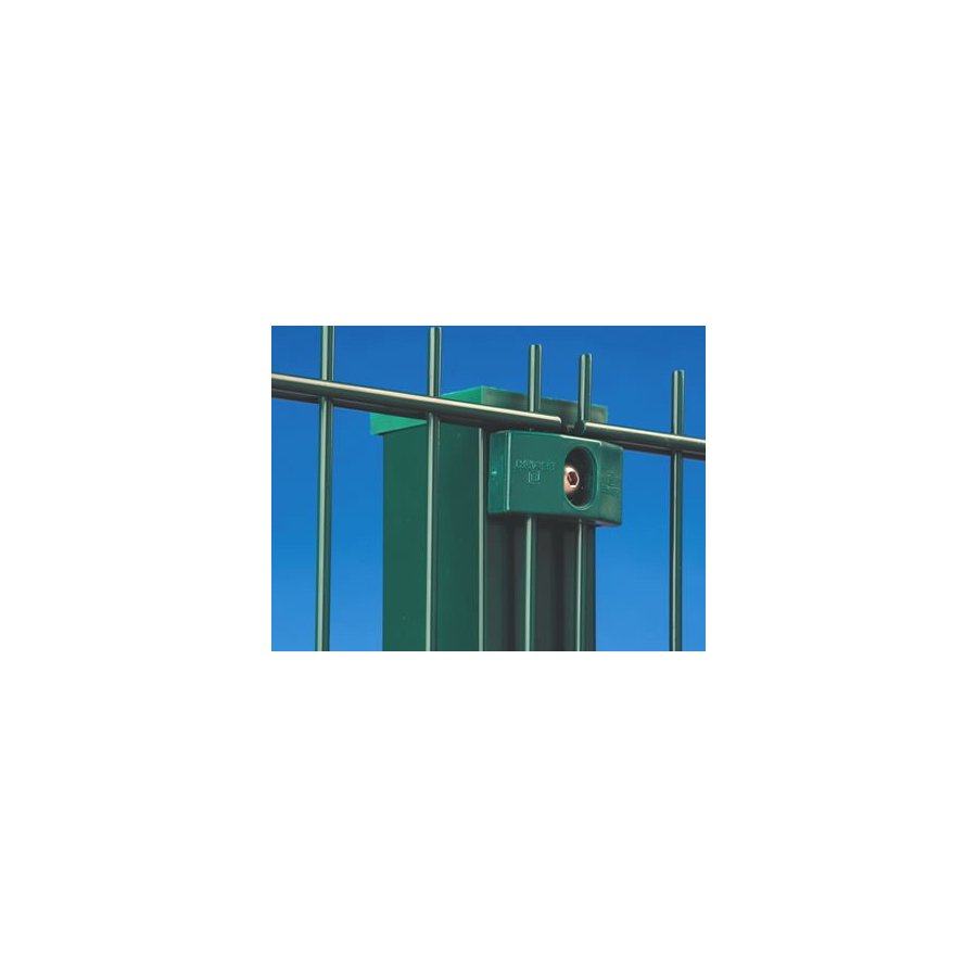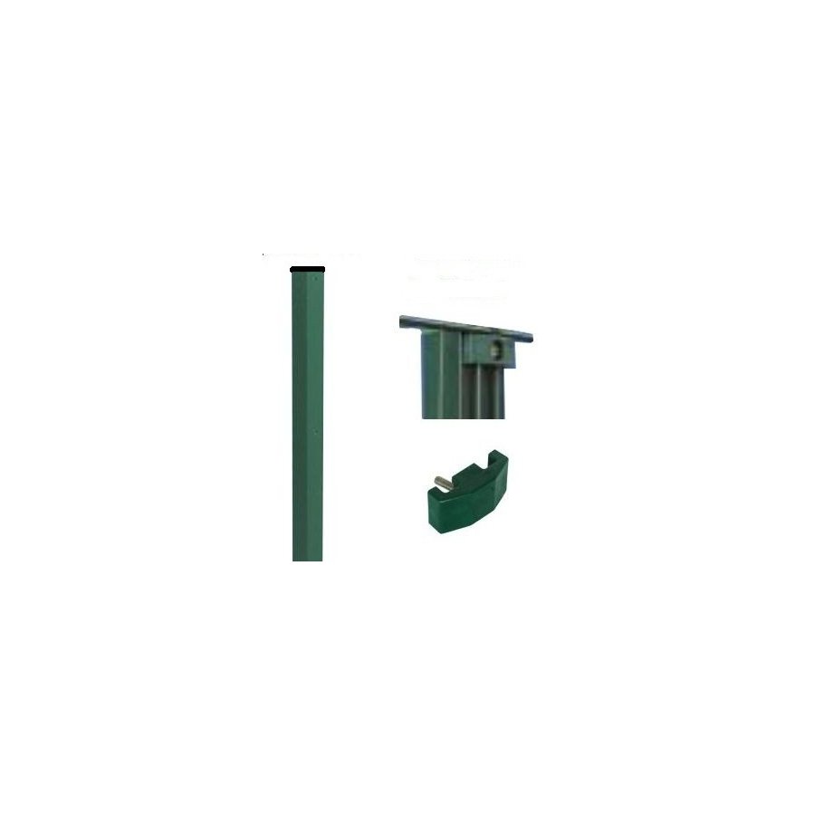Stĺpik QUATRO PLUS výšky 300cm s úpravou zinok + pvc vo farbe RAL 6005 zelený so štvorcovým prierezom 60x60mm a hrúbkou steny 1,5mm. Súčasťou je čiapočka. Stĺpik má 6 nalisovaných matíc. Je určený k plotovým panelom.