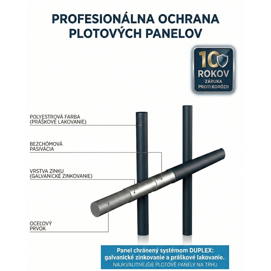 Panel Classic ponúka vyššiu tuhosť než rad Apollo. Zvárame ho zo surového železa, až následne zinkujeme a vypaľujeme v peci. Tento postup chráni každý zvar a zaručuje životnosť po celé desaťročia. Na koróziu poskytujeme záruku 10 rokov.